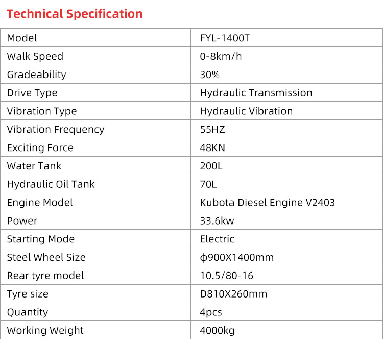 The FYL-1400T’s two-stage compaction process delivers a superior finished product on medium tonnage projects. The front drum’s powerful vibration achieves optimal density, while the pneumatic tires’ kneading effect helps to seal the surface and provide a tight, professional-looking asphalt mat.