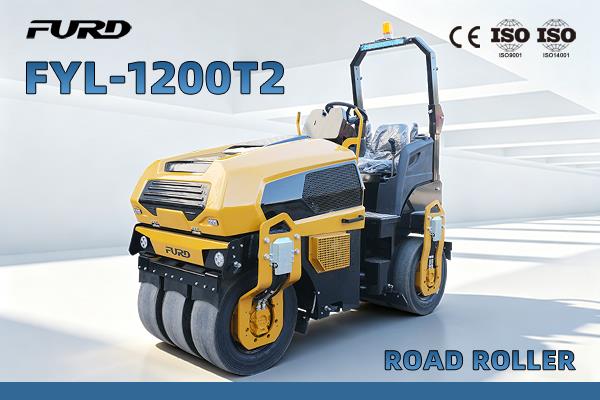 FYL-1200T2 compact pneumatic tire roller from FURD, equipped with Kubota engine meeting EU Stage 5/EPA. With articulation, and compact dimensions, it’s perfect for narrow space, asphalt repair, landscaping and small construction site compaction.