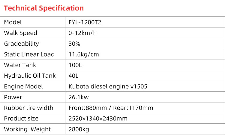 1. Full hydraulic system: The FYL-1200 is equipped with a full hydraulic system that allows for continuous variable