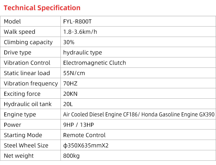 FYL-R800T Remote Controlled self-developed double drum vibratory trench roller, the ultimate solution for efficient and precise compaction on your construction site. Engineered with remote controlled technology, this roller boasts unparalleled control and performance, revolutionizing the way you approach compaction tasks.