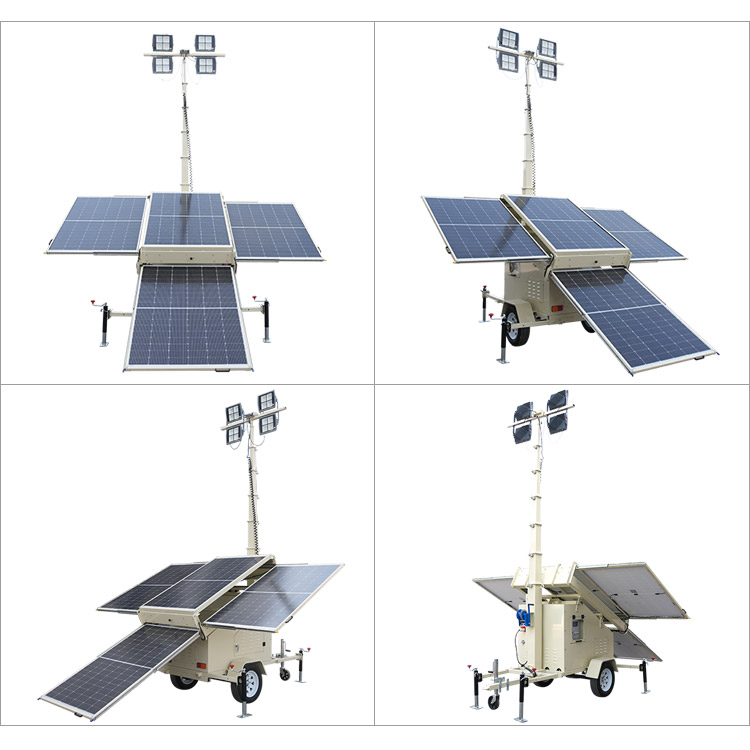 We have developed a new product called the Solar Light Tower, which is designed with the concept of energy saving and environmental protection. It can be deployed in remote areas for long periods and is self-powered by the sun. Which are charged automatically via adjustable solar panels, operate clean, silently and efficiently, the best choice for applications where noises is an issue.